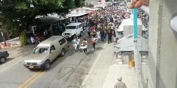 El sepelio de Jesús María Aguirre, alias 'Chucho Mercancía', el líder de 'Los Pachencas' abatido por la fuerza pública, se realizó en medio de una multitudinaria caravana de motocicletas y vehículos en el corregimiento de Guachaca, zona rural de Santa Marta.