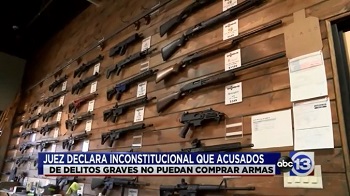 HOUSTON, Texas (KTRK) --Ya no es constitucional prohibir que las personas acusadas de delitos graves compren armas, dictaminó el lunes un juez federal en Texas.